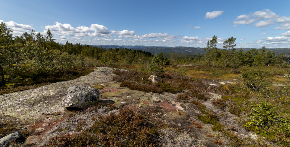 Det er nå over 10 år siden jeg jobbet som fellesfaglærer ved KVS-Bygland og jaktet på skolens nesten 50 000 mål store jaktterreng øst for Bygland Sentrum. Lørdag 21. august bestemte Marianne og jeg oss for å ta en tur til gamle tomter, nærmere bestemt til Byglandsheiene hvor jeg jaktet og koste meg som verst i årene fra 2006 til 2011. Men denne gangen bar jeg ikke med meg hagle og patroner, men to bærplukkere. For målet med turen var å forsøke å finne litt blåbær. Med andre ord, gjøre oss bruk av Allemannsretten til fritt å kunne høste bær i utmark. Vi parkerte bilen ved Stenstog, og fulgte så den gamle traktorvegen oppover mot heia. Til venstre for oss lå den berømte Svettelia, hvor postene vanligvis ble utplassert når KVS-Bygland var på elgjakt i slutten av september. Solen skinte, temperaturen var minst 20 grader og svetten drev av oss mens vi beveget oss oppover mot heia, en stigning på rundt 300 meter. Jeg husker hvor lett og ledig jeg gikk opp disse bratte skrentene for 15 år siden. Nå gikk det litt tregere, for å si det forsiktig, og pausene ble litt flere. Men vi nøt av den friske gode byglandsluften og den flotte utsikten, som jo bare blir finere og finere jo høyere i terrenget man kommer. Langs den gamle traktorveien fant vi litt blåbær, og vi bestemte oss for å plukke dem på returen.